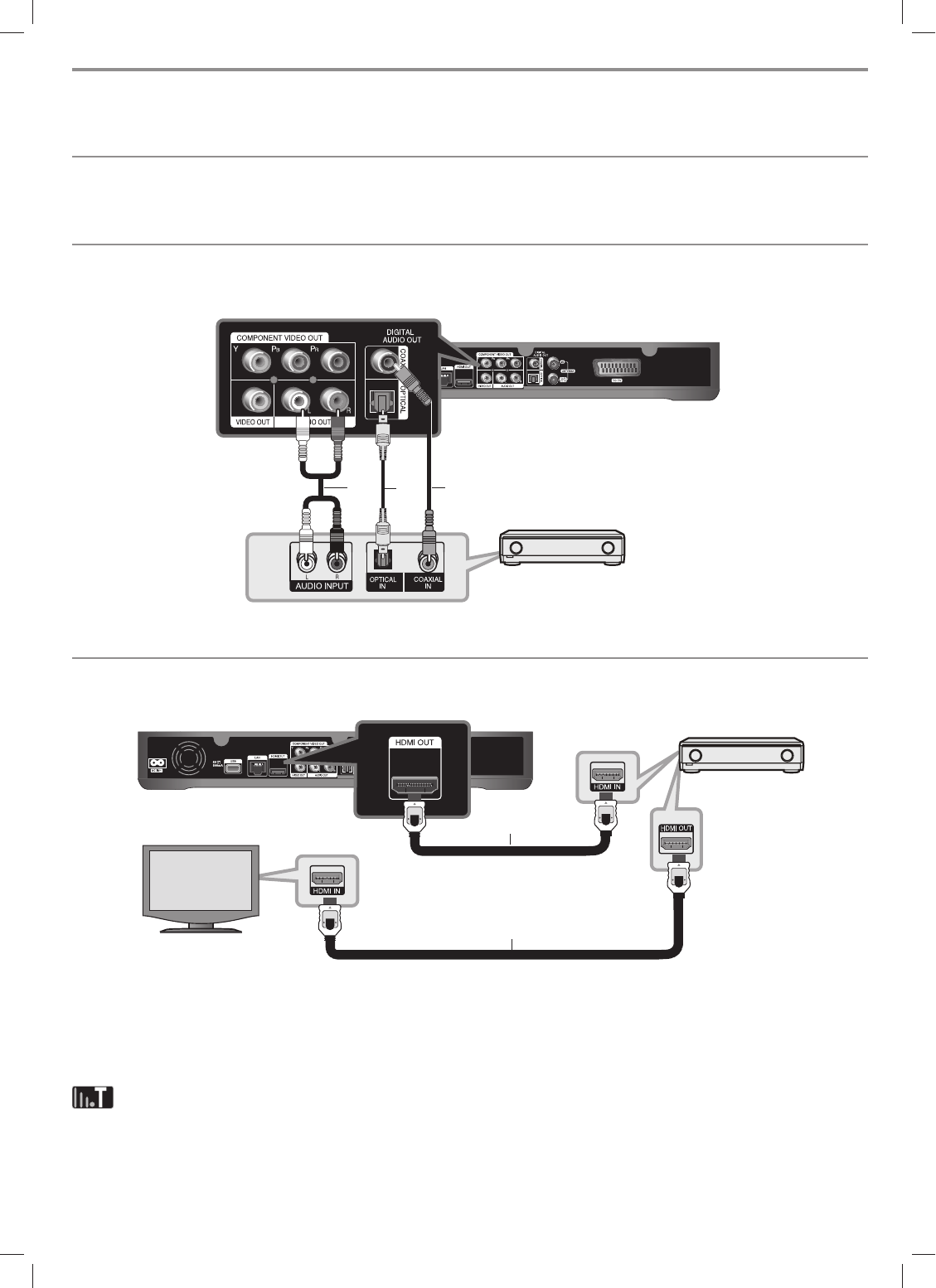 Connect the unit HDMI OUT jack to the corresponding in jack on your amplier. Use a HDMI cable (H1). You will need to